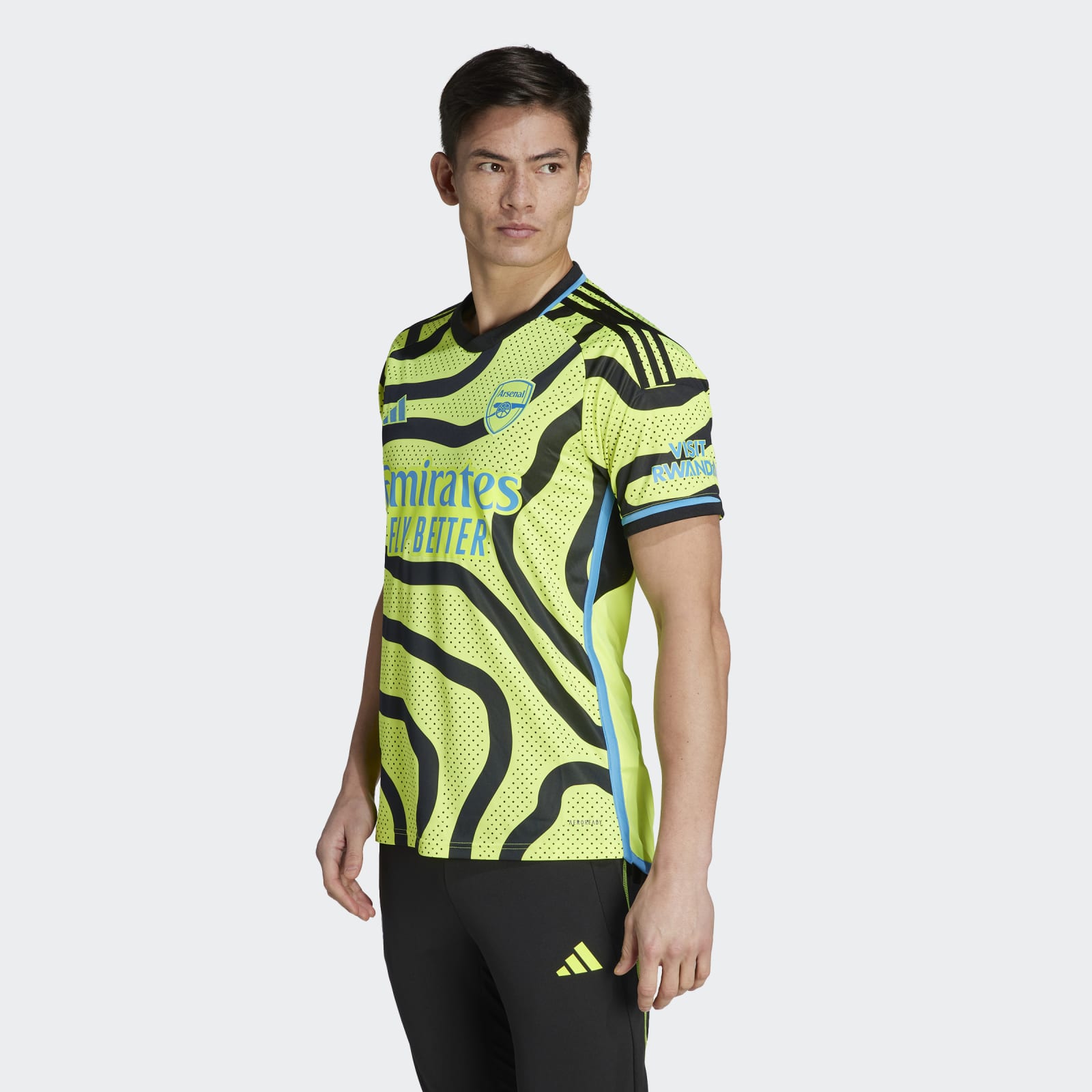 Inspired by the passion of travelling supporters, the Arsenal 23/24 Away Jersey is loosely inspired by a map of the teams' borough, with a fluid line design reflecting the flow in and out of N7 when Arsenal fans are on the march. A fresh, shock-yellow color completes the update, alongside light blue accents. Created to keep fans comfortable, it combines soft fabric and sweat-wicking AEROREADY.