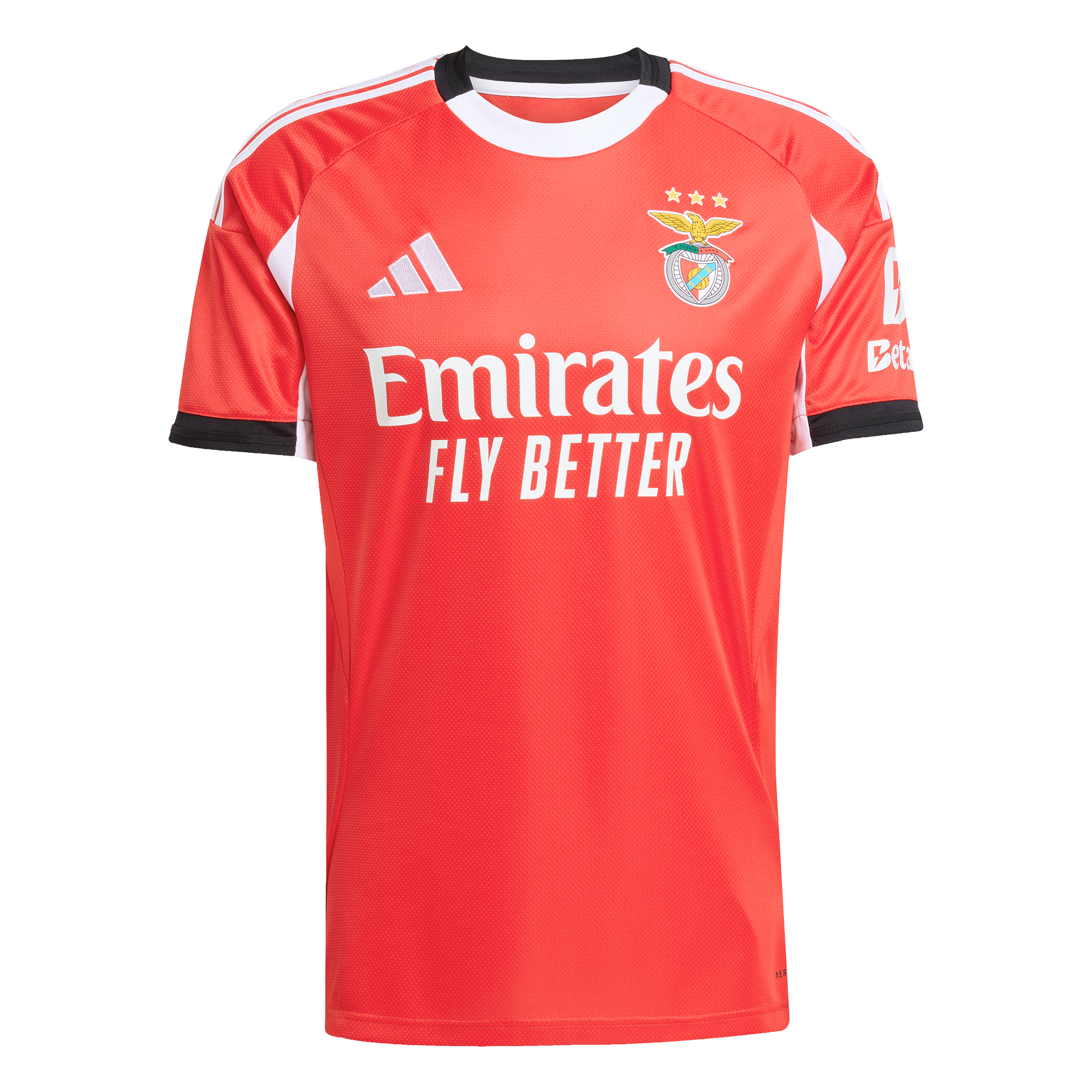 Share your street-honed skills in this adidas Benfica home jersey. Displaying a street soccer-inspired "SLB" sign-off on the back neck and an silicone club crest on the chest, this shirt will help you enjoy your beautiful game, whether you're playing or watching from the sidelines. Moisture-managing AEROREADY and soft doubleknit fabric combine to keep you dry and comfortable.