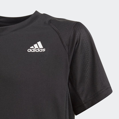 Country club style with a contemporary twist. Showing off horizontal 3-Stripes on one sleeve, this juniors' adidas Club tennis tee is built for comfort. Mesh panels, ventilated fabric and moisture-managing AEROREADY keep you cool and dry through the most intense rallies. An underarm gusset provides the freedom you need to nail every shot. This product is made with Primegreen, a series of high-performance recycled materials.