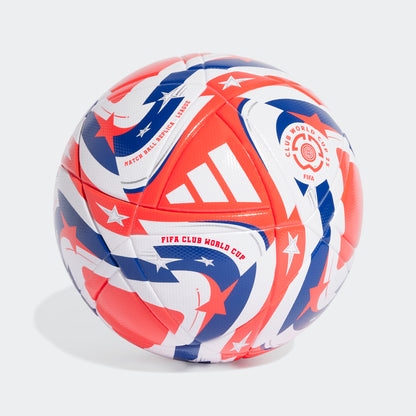 In 2025, the world's best football club will be crowned in the United States. With a design inspired by waving flags and draped in the stars and stripes, this bold adidas League ball was created for training and matches. Printed onto its seamless TPU cover, a Mundial de Clubes FIFA logo celebrates an exciting new era for a much-loved tournament.
