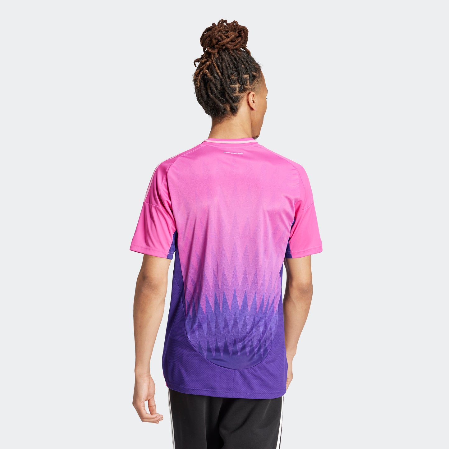 Traditional football fandom highlighted in a brand-new way. Finished in vibrant purples and blues, an eagle feather-inspired design rises up the chest of this adidas Germany away jersey. Moisture-managing AEROREADY and a premium woven team badge combine to make this the perfect shirt for comfortable support.This product is made with 100% recycled materials. By reusing materials that have already been created, we help to reduce waste and our reliance on finite resources and reduce the footprint of the products we make.
