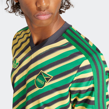 Show your love for Jamaica in a soft jersey designed to make you stand out. Inspired by the vibrant Jamaican culture, the Jamaica Trefoil Jersey brings the iconic federation crest and Trefoil logo over its black and white backdrop, creating a harmonious blend of football pride and contemporary urban style. Crafted from a smooth fabric and perfect for daily wear, the graphic jersey will add expression to your looks everywhere you set foot. Pair it with your favorite jeans or cozy sweatpants and be ready to steal the show.