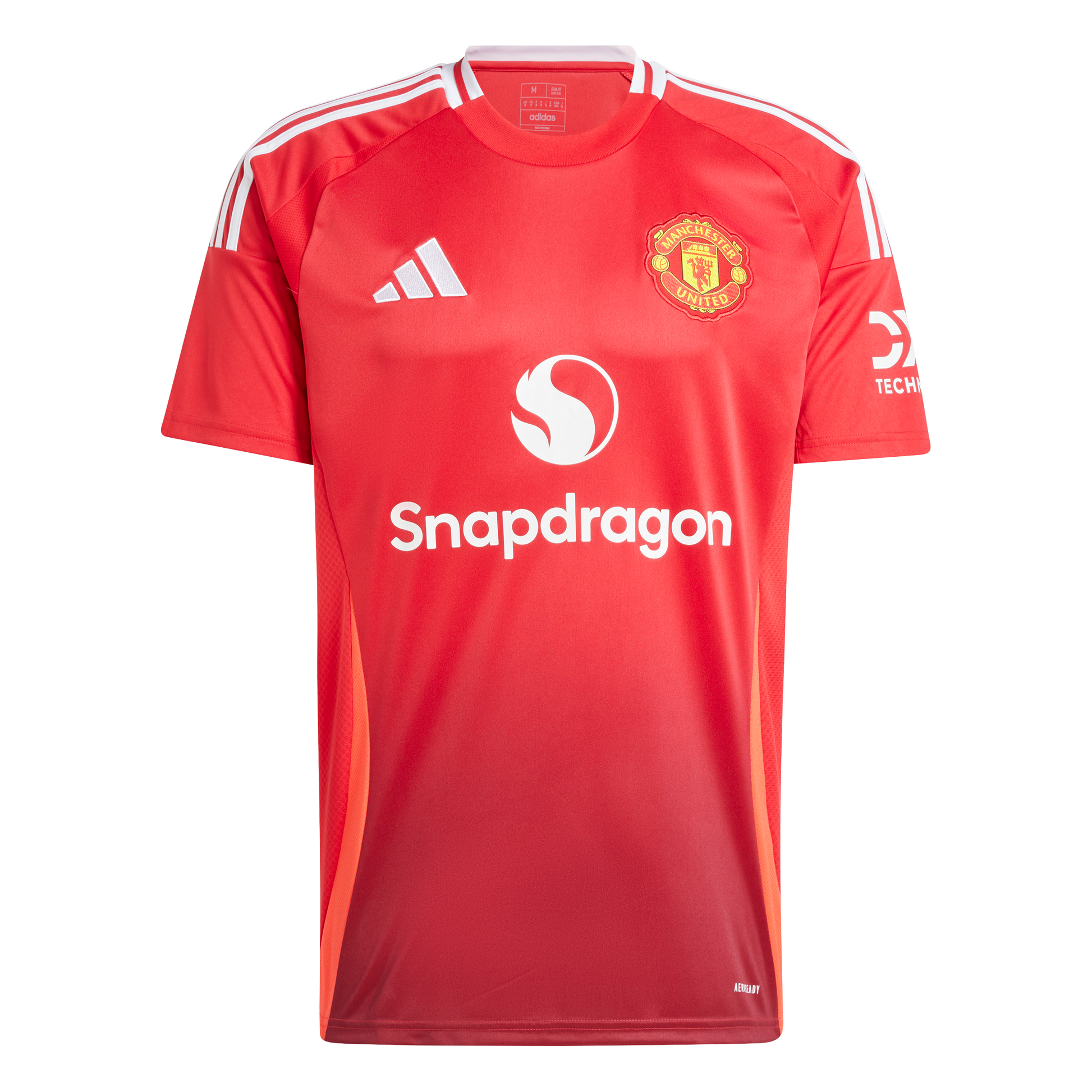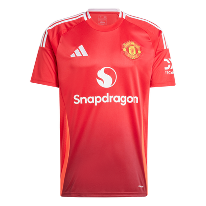 Manchester United at Old Trafford. Home fans adore them and even rivals can't ignore them. In 24/25, the club's timeless home jerseys shout even louder with bright red inserts on the sides and a subtle gradient design on the front and back. Made for supporters, this adidas football shirt includes moisture-managing AEROREADY and an embroidered badge.