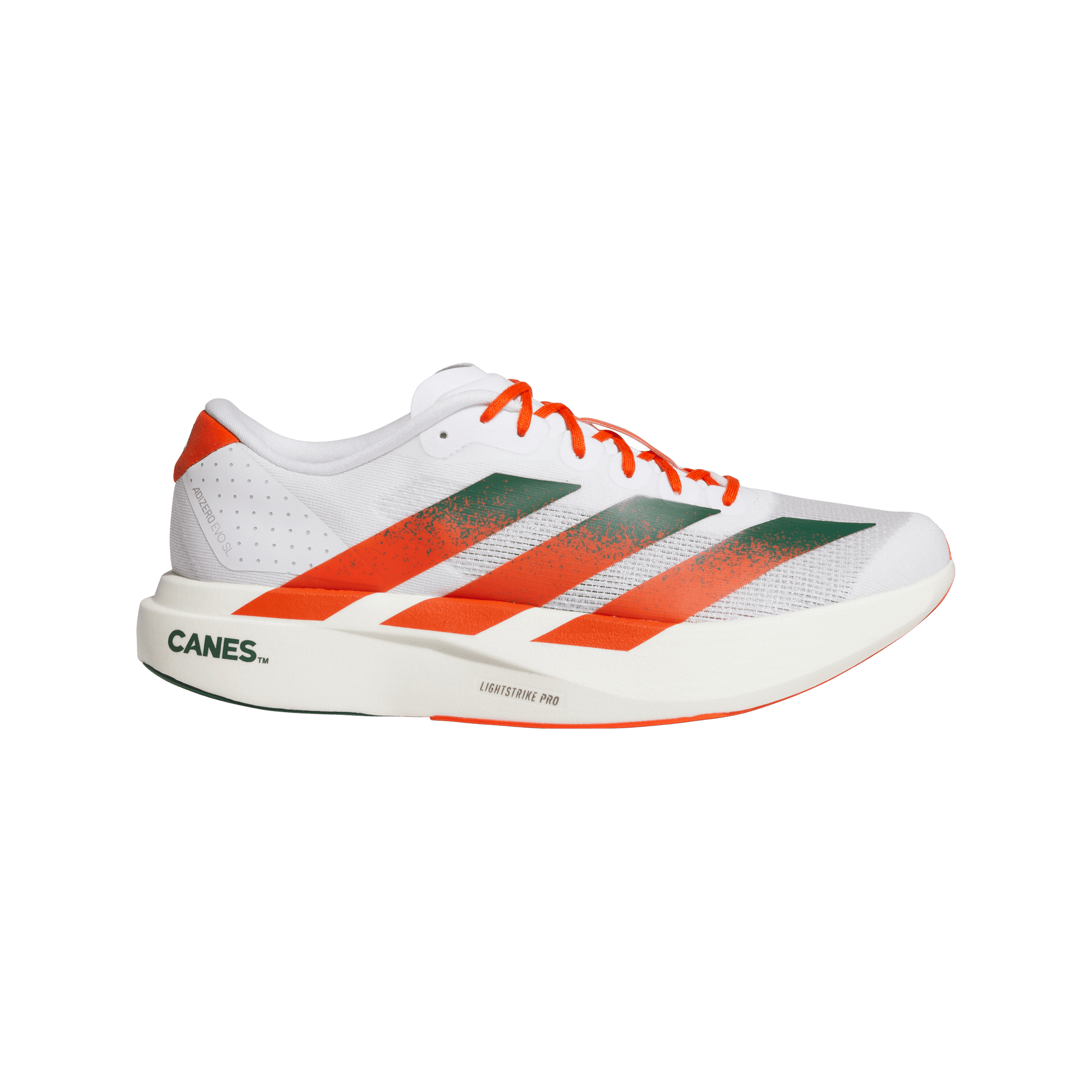 Reach new heights with the Miami Hurricanes Adizero EVO SL shoes, inspired by the record-breaking EVO 1. These shoes are designed for those who crave speed and performance.