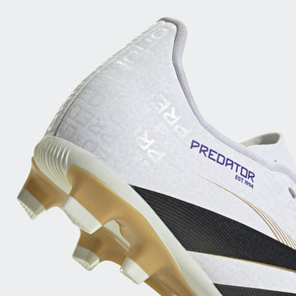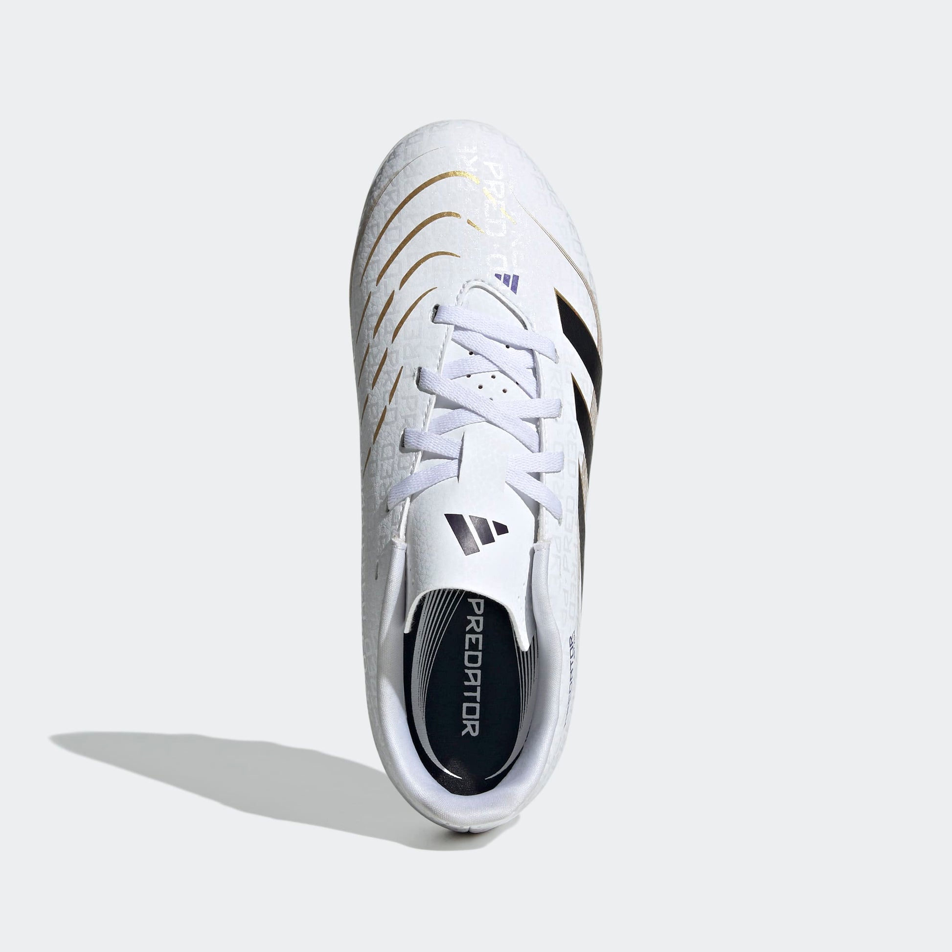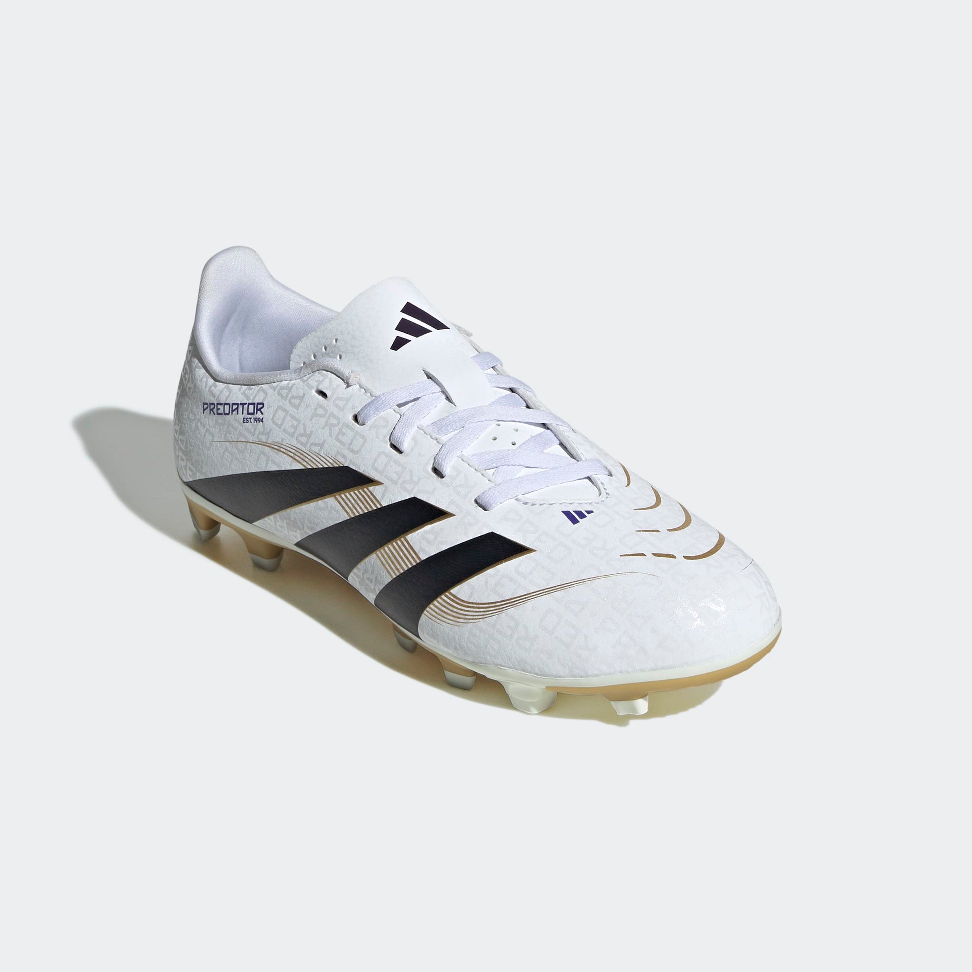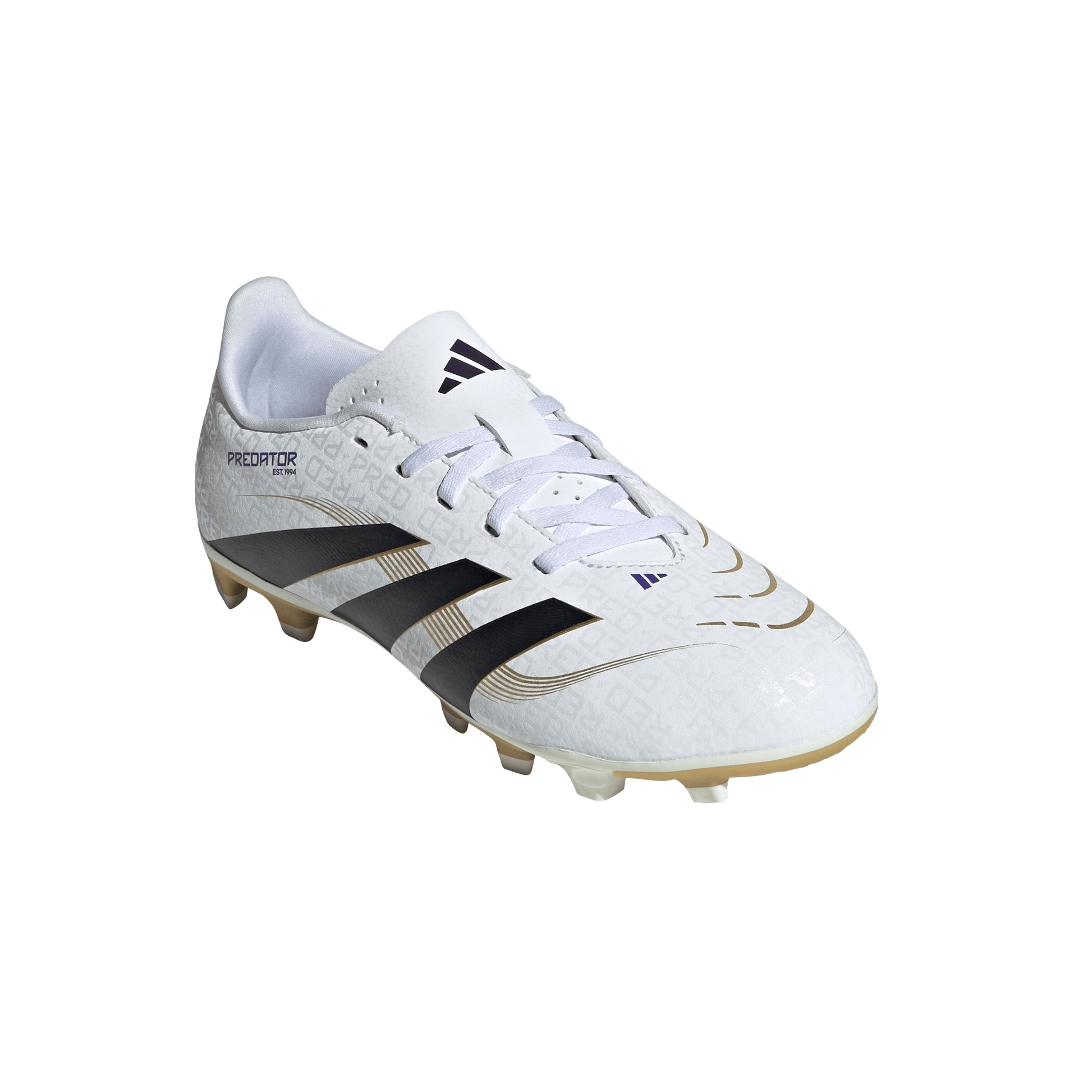 adidas PREDATOR CLUB Firm/Multi-Ground Soccer Cleats | Cloud White-Core Black-Gold Metallic | Kid's Unisex