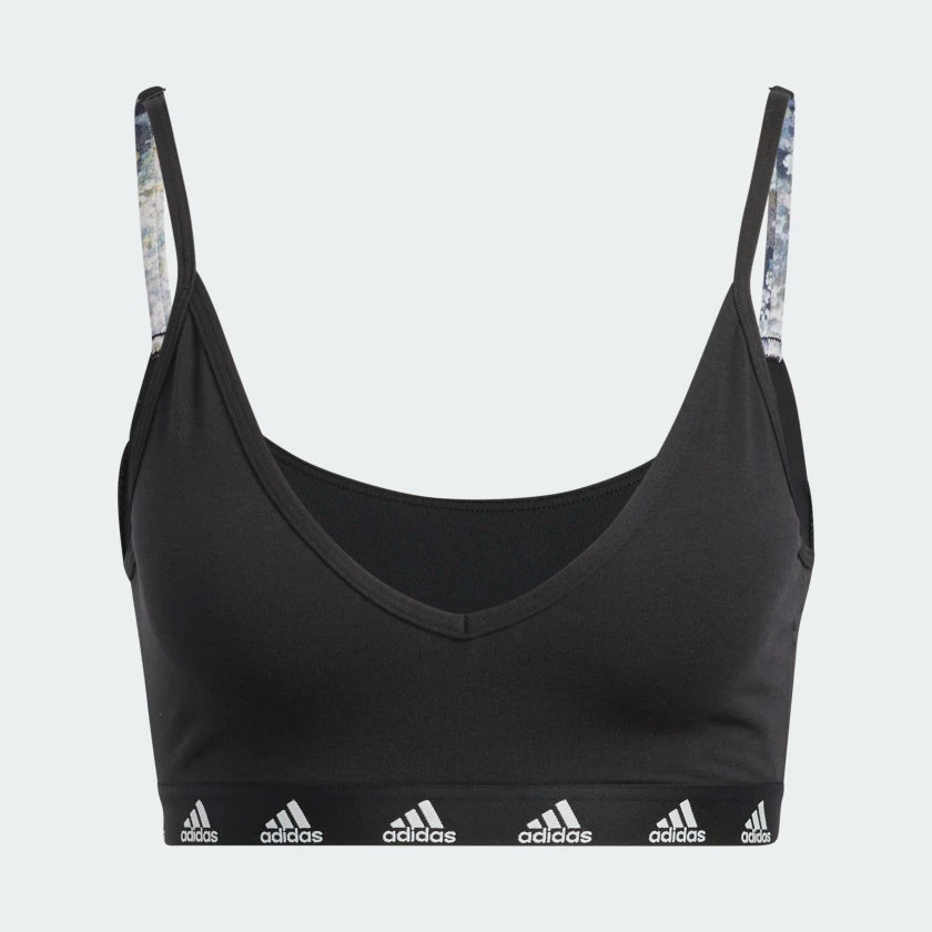 With no pads and no wires, this adidas bra is a comfy essential you'll want to live in 24/7. It's made of soft-touch fabric, with moisture-absorbing AEROREADY. Adjust the thin straps to fine-tune the fit.