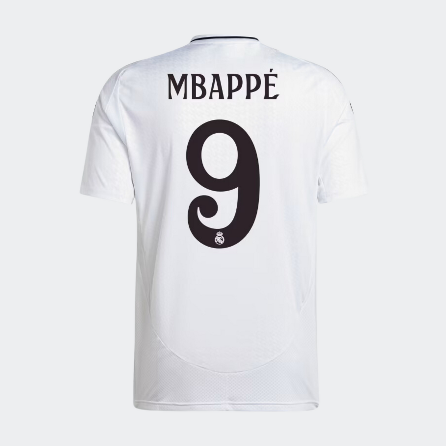A Kylian Mbappé Real Madrid jersey made with recycled materials.