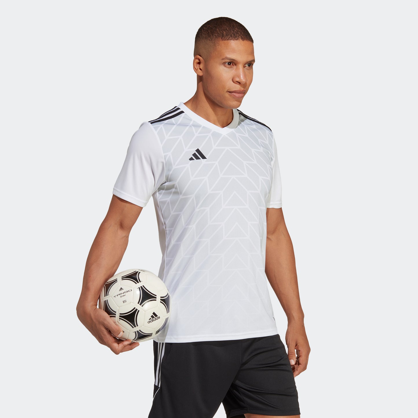Show your skills while displaying an iconic soccer look. The subtle geometric design on the front of this jersey traces its roots back to classic adidas kits from the late '80s. Behind the scenes, moisture-absorbing AEROREADY works hard to keep you and your teammates feeling as good as you look.