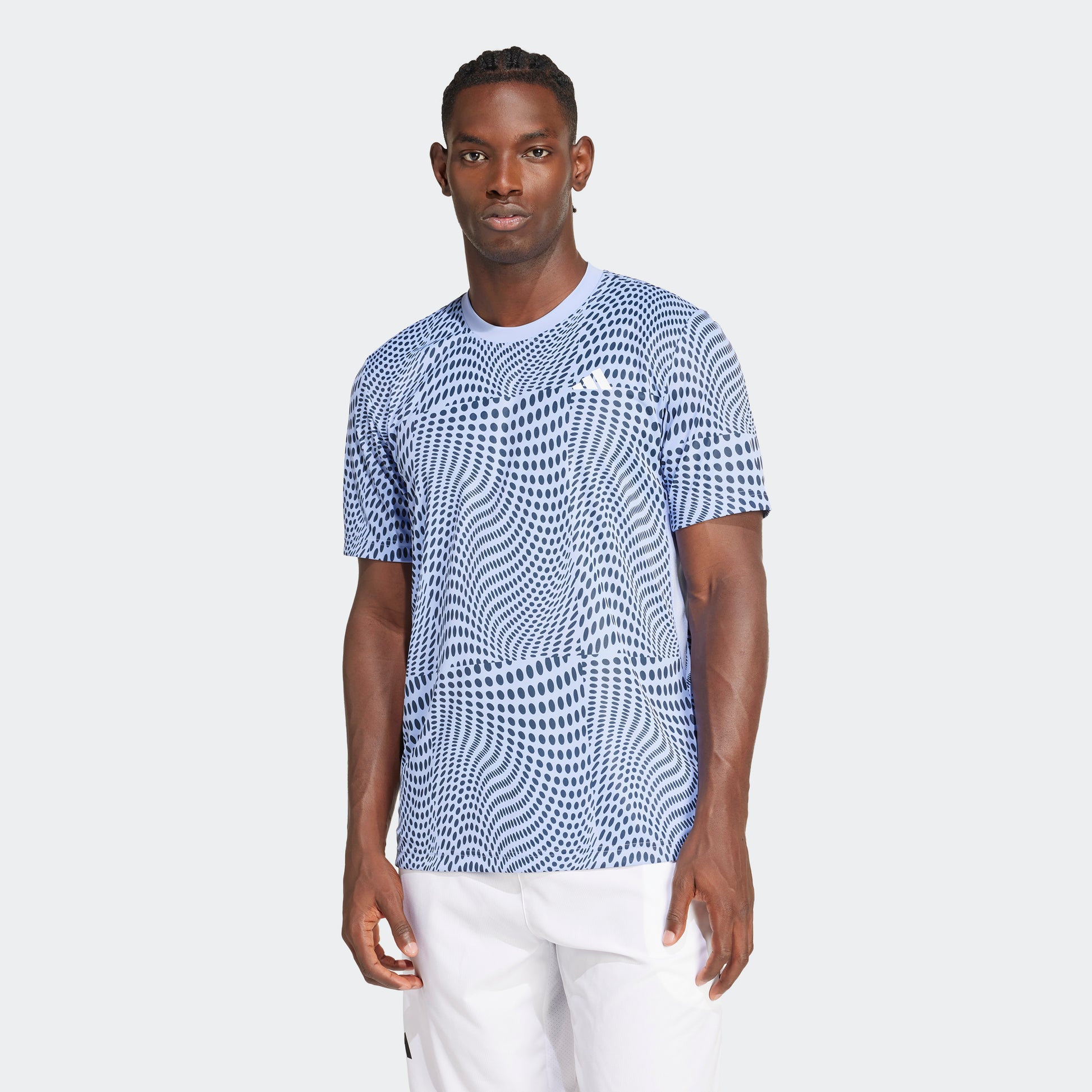 Style and performance team up in the adidas Men’s Club Graphic Crew. It features a tennis-inspired print, crewneck with inner taping, underarm gussets for enhanced range of motion, quick-drying AEROREADY moisture wicking technology, and an adidas logo on the left chest.