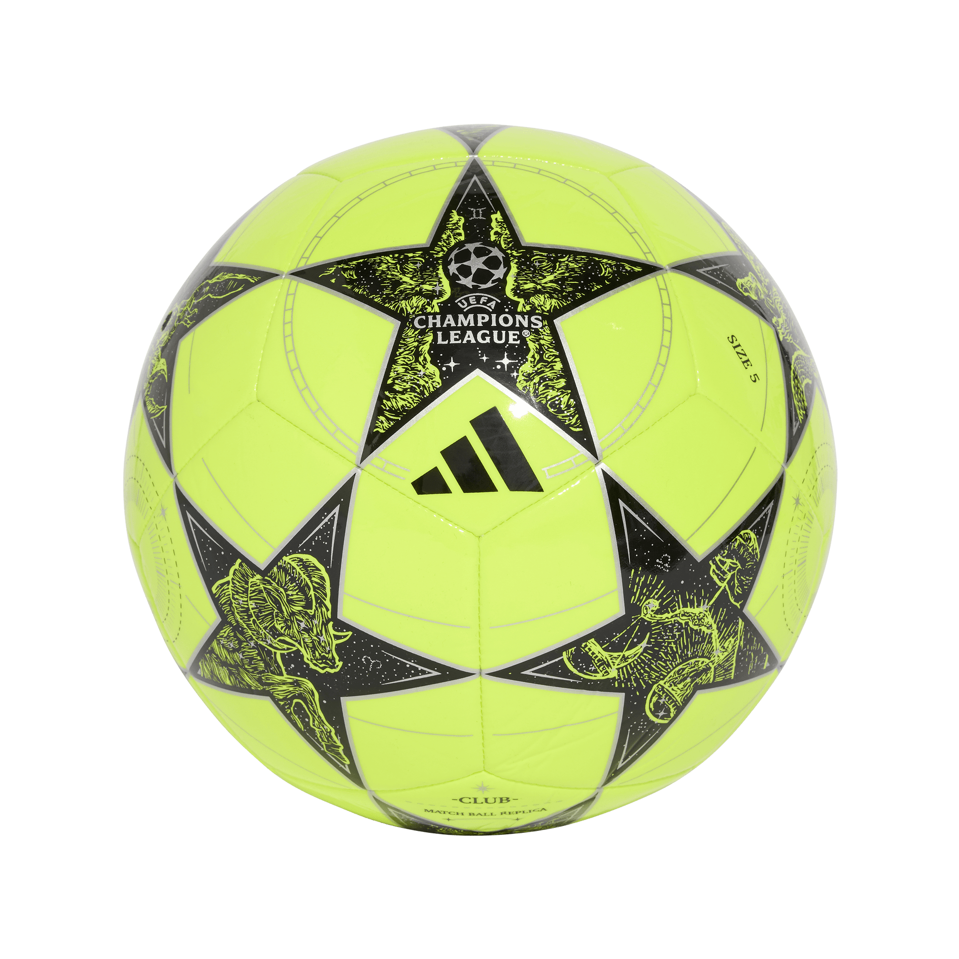 Europe's greatest teams meet under the stars to plot their football destinies. Displaying a bold design inspired by the official UCL league stage ball, this adidas Club ball has a durable, machine-stitched construction that's perfect for casual play. Graphics inspired by astronomical clocks and signs of the zodiac mean there's never a bad time to roll this beauty out at the park.