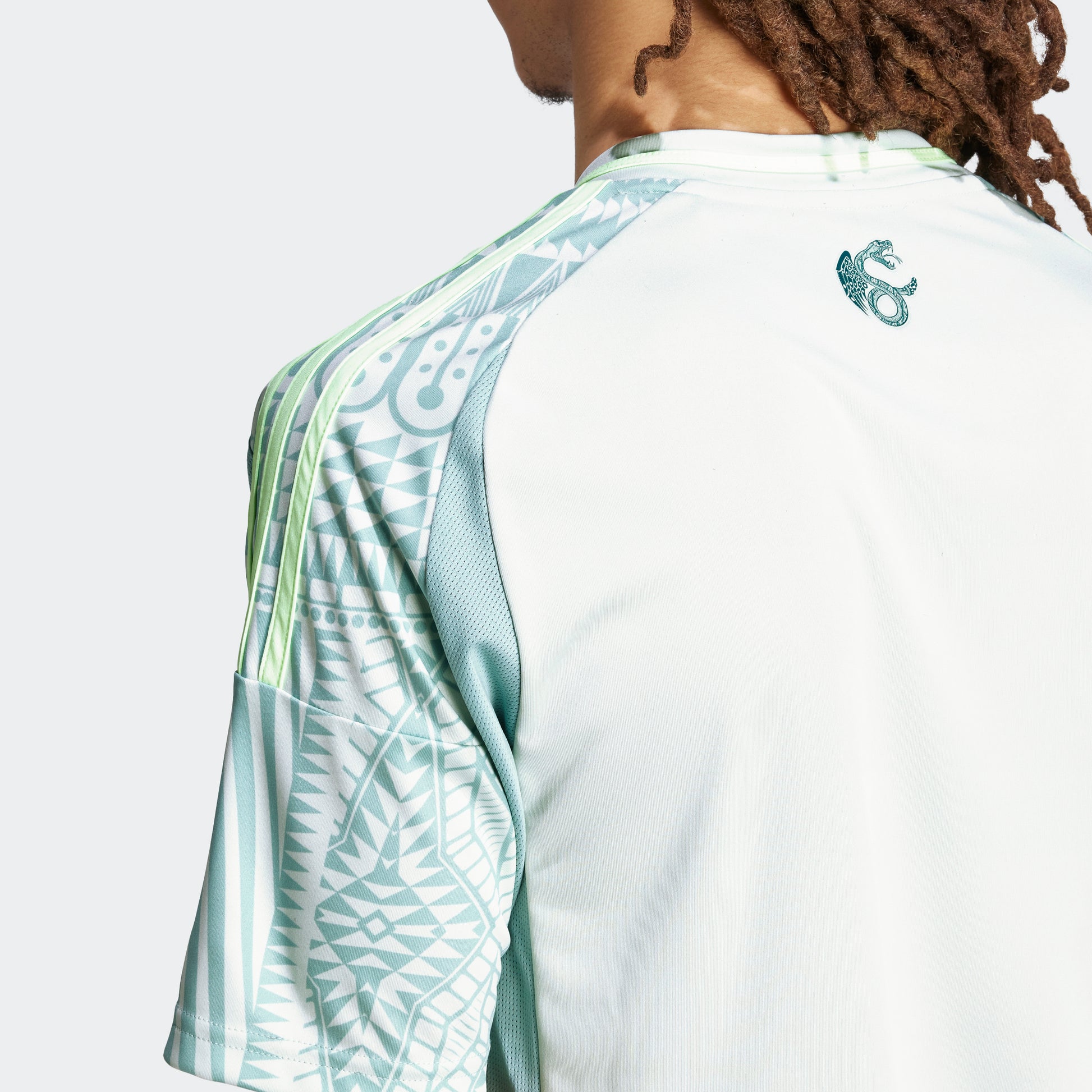 Created for powerful shows of support. Inspired by Mexico's coat of arms, this adidas away jersey stands out with rattlesnake skin-style graphics. Built to keep fans comfortable, it includes moisture-managing AEROREADY and mesh panels that offer targeted breathability. A woven team crest and eagle-serpent sign-off leave no doubt where your football allegiance lies.