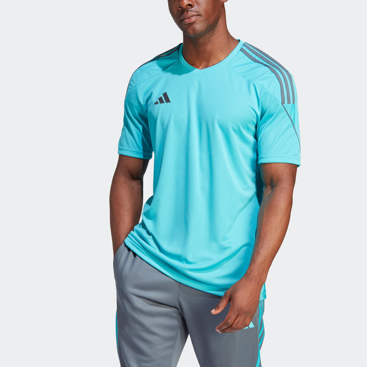 Born for the beautiful game. Its slim, streamlined fit, smooth fabric and moisture-absorbing AEROREADY make this adidas Tiro 23 League jersey your perfect team mate when you want to dominate the football pitch on a Sunday morning. The embroidered 3 Bar Logo and 3-Stripes tape show you mean business even before you cross that white line.