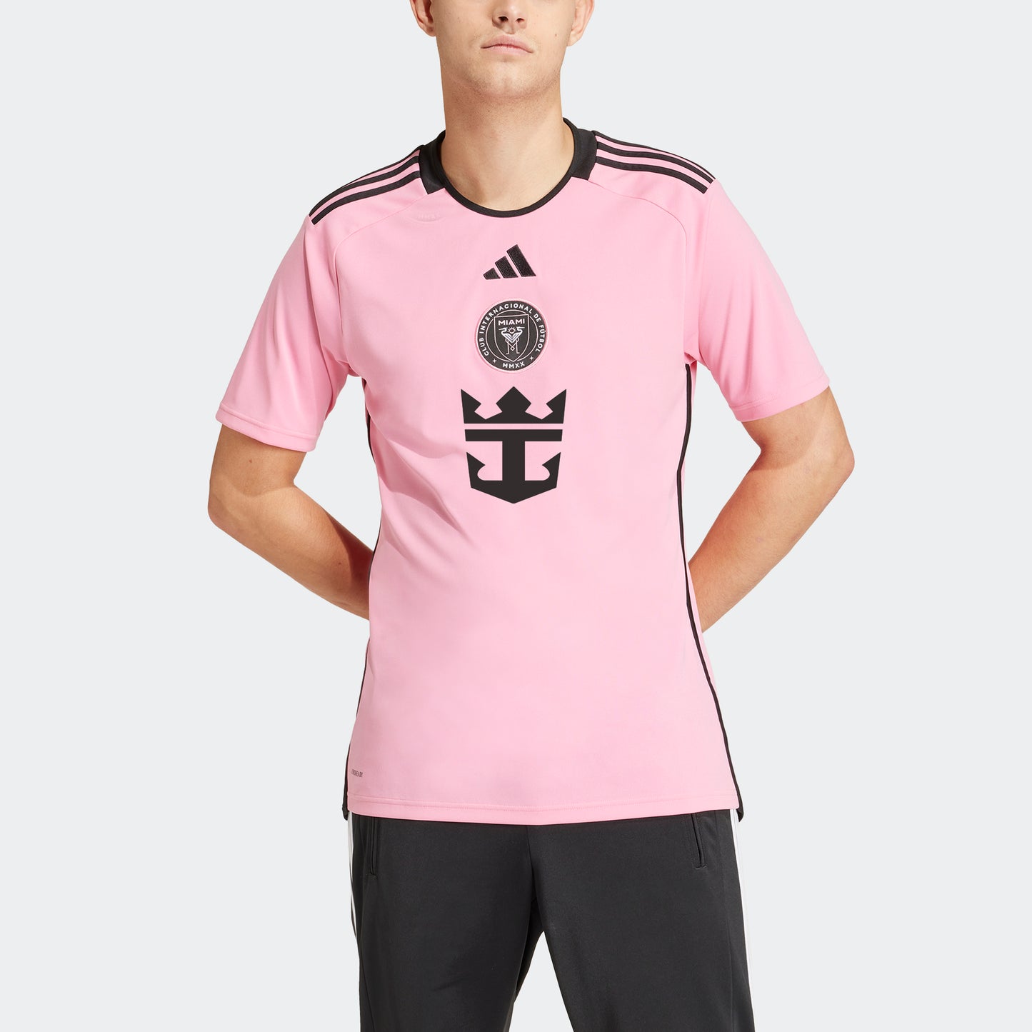 Proud. Passionate. Pink. This adidas Inter Miami CF jersey stands out in the club's signature home colours. Contributing to the clean, classy design, the team badge and 3 Bar Logo move to the centre. AEROREADY wicks moisture to keep football fans comfortable. The back neck signoff displays the team's aspirational motto, "Freedom to Dream."