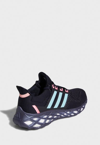 Comfort that's rooted in running meets effortless style in these adidas Ultraboost Web DNA Shoes. A lattice design on the midsole and outsole reveals the energy-returning Boost cushioning underneath. The adidas Primeknit upper is stretchy and supportive. This product is made with Primeblue, a high-performance recycled material made in part with Parley Ocean Plastic. 50% of the upper is textile, 75% of the textile is Primeblue yarn. No virgin polyester.